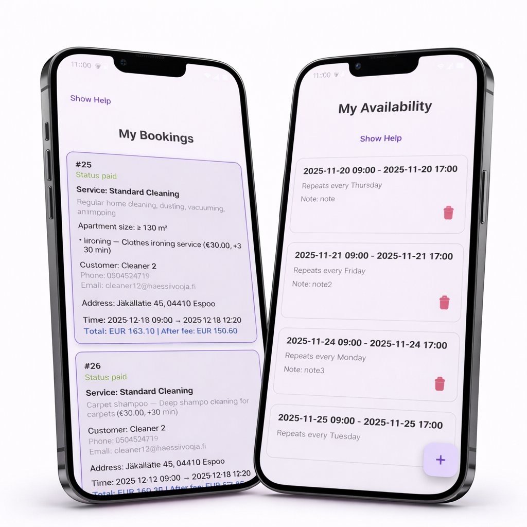 löydä ja varaa siivooja vain muutamalla napautuksella.